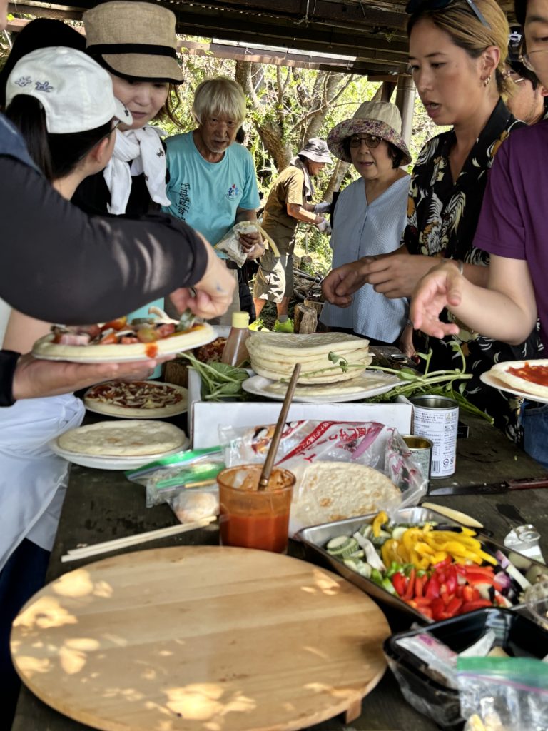 お昼は新地町の素敵な桟橋で、新地の大地で活きる会の方たちが準備してくれた釜焼きピザをいただけるのもとても人気です!
